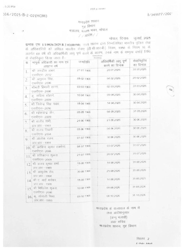 2026 में रिटायर होंगे MP कैडर के 16 IPS अधिकारी