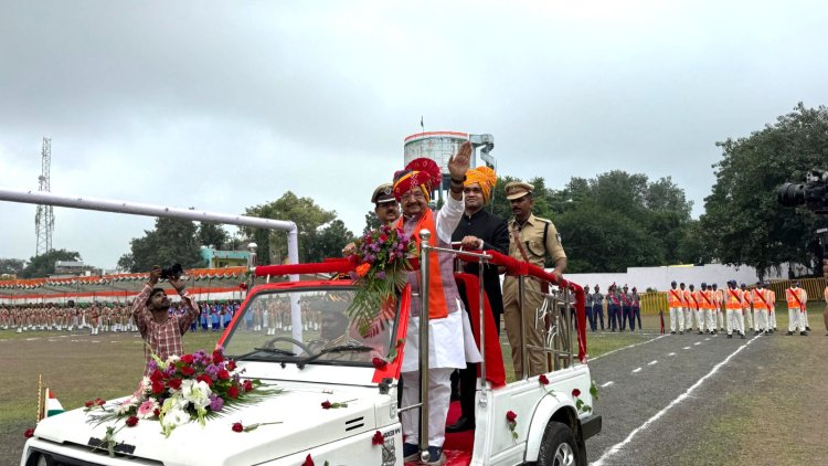 खरगोन के प्रभारी मंत्री विश्वास सारंग ने ध्वजारोहण किया और डीआरपी पुलिस लाइन में आयोजित कार्यक्रम में भी शामिल हुए.