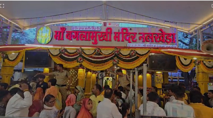 आगर मालवा: चैत्र नवरात्रि के अवसर पर नलखेड़ा स्थित विश्व प्रसिद्ध माँ बगलामुखी मंदिर में भक्तों का भारी जनसैलाब उमड़ रहा है। अलसुबह से ही बड़ी संख्या में श्रद्धालु माता के दर्शन के लिए पहुंच रहे हैं। मंदिर को भव्य रूप से सजाया गया है और माता का विशेष श्रृंगार किया गया है।