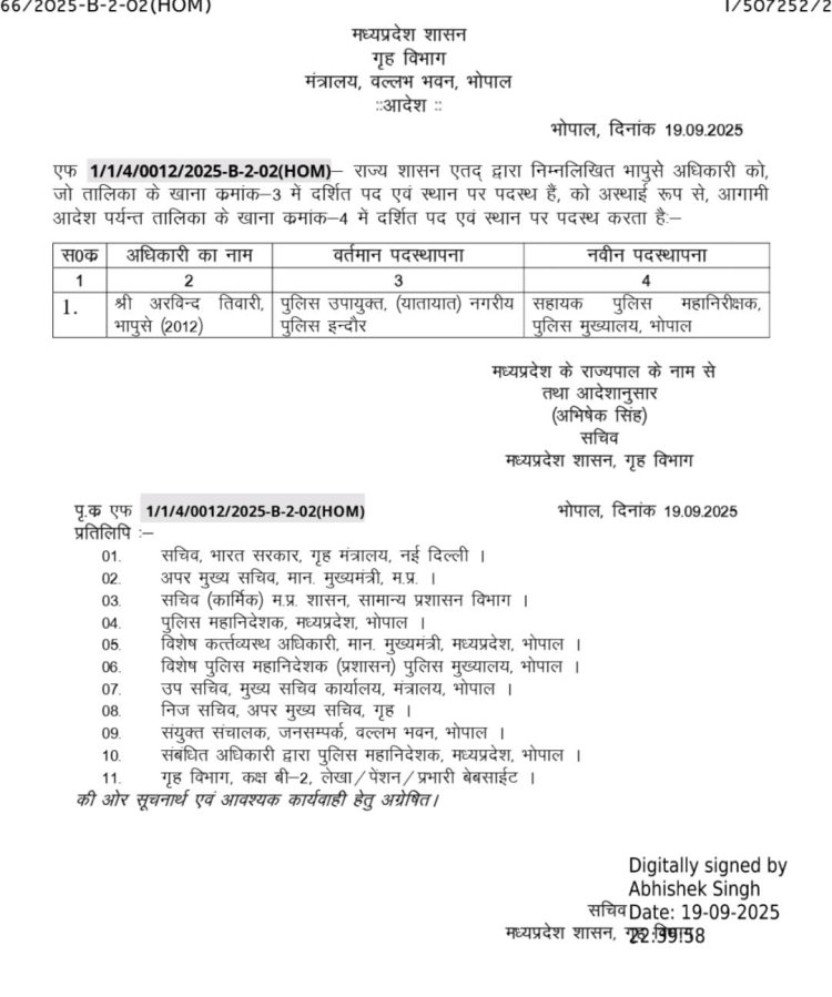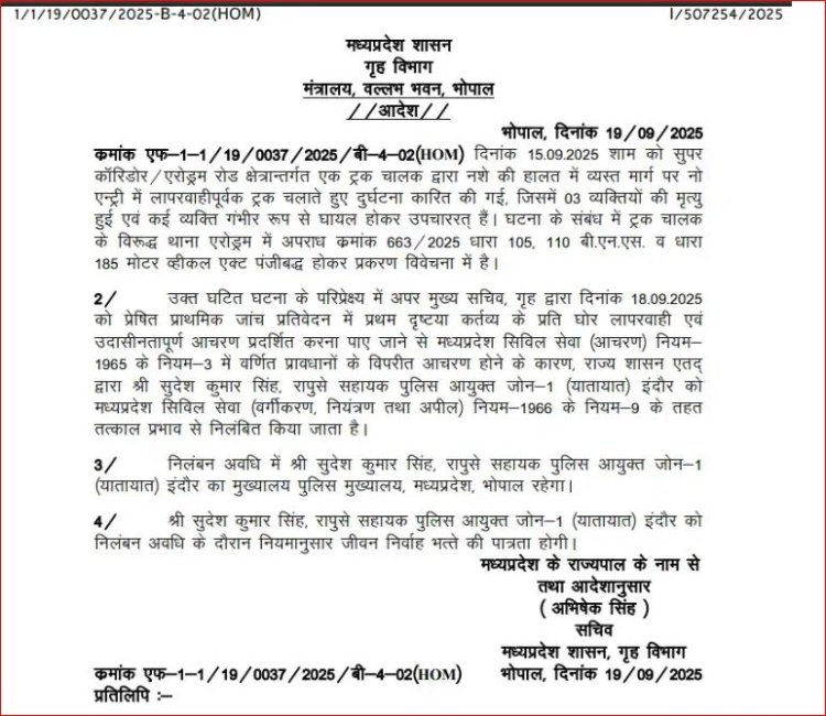 इंदौर ट्रक हादसे में DCP अरविंद तिवारी को किया PHQ अटैच सहायक पुलिस आयुक्त सुदेश सिंह निलंबित