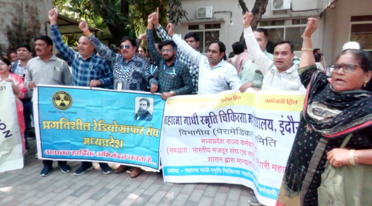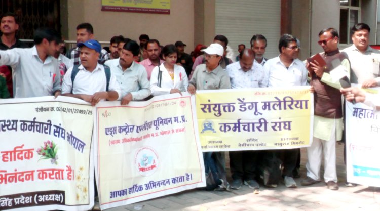 मप्र संविदा आउटसोर्स स्वास्थ्य कर्मचारी संघ के आह्वान पर प्रदर्शन