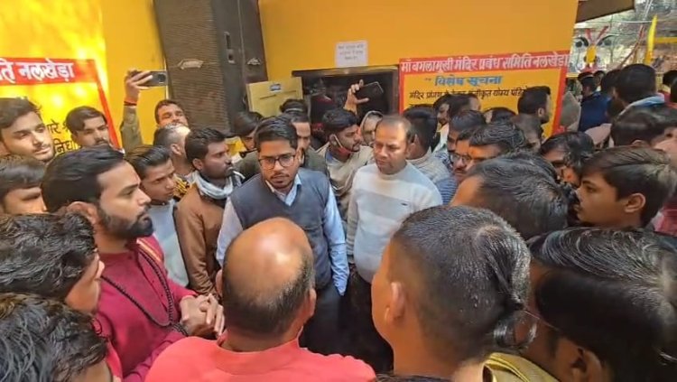 आगर मालवा: जिले के प्रसिद्ध नलखेड़ा स्थित मां बगलामुखी मंदिर से जुड़ा विवाद अब बड़ा प्रशासनिक मामला बन गया है। मंदिर के पंडितों ने सुसनेर एसडीएम सर्वेश यादव के खिलाफ अनिश्चितकालीन आंदोलन शुरू करते हुए हवन-अनुष्ठान बंद कर मंदिर परिसर में धरना दिया था.और जमकर नारेबाजी की थी. पंडितों ने आरोप लगाये थे कि एसडीएम ने उनके साथ अभद्र भाषा का प्रयोग किया और मनमानी रवैया अपनाया जा रहा है. जिससे वर्षों से पूजा-पाठ कराने वाले करीब 200 पंडितों की आजीविका पर संकट खड़ा हो गया है. मंदिर परिसर में दिन भर एसडीएम के खिलाफ प्रदर्शन ओर नारेबाजी भी हुई थी.
