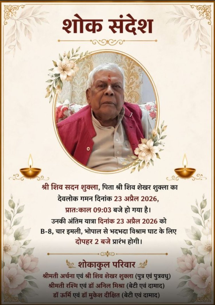 मध्य प्रदेश शासन में वरिष्ठ IAS अधिकारी शिव शेखर शुक्ला के पिता का निधन हो गया.