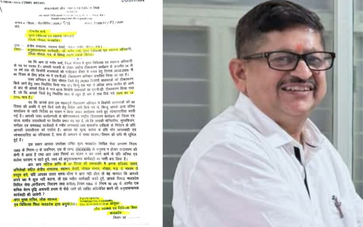 भोपाल: राजधानी भोपाल में स्वास्थ्य विभाग की कार्यप्रणाली पर गंभीर सवाल खड़े हो गए हैं। अपर मुख्य सचिव के निर्देश पर स्वास्थ्य आयुक्त धनराजू एस ने भोपाल के मुख्य चिकित्सा एवं स्वास्थ्य अधिकारी (सीएमएचओ) डॉ. मनीष शर्मा को राष्ट्रीय टीकाकरण कार्यक्रम में लापरवाही बरतने का आरोप लगाते हुए कारण बताओ नोटिस जारी कर दिया है। नोटिस में डॉ. शर्मा को एक सप्ताह के अंदर लिखित स्पष्टीकरण देने के निर्देश दिए गए हैं। यदि संतोषजनक जवाब नहीं दिया गया तो नियमानुसार अनुशासनात्मक कार्यवाही की जाएगी।