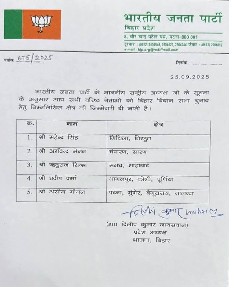 बिहार में विधानसभा चुनाव को लेकर बीजेपी ने कमर कस ली है. मध्य प्रदेश बीजेपी के पूर्व प्रदेश अध्यक्ष और खजुराहो सांसद विष्णुदत्त शर्मा, को बिहार चुनाव में बड़ी ज़िम्मेदारी मिली है