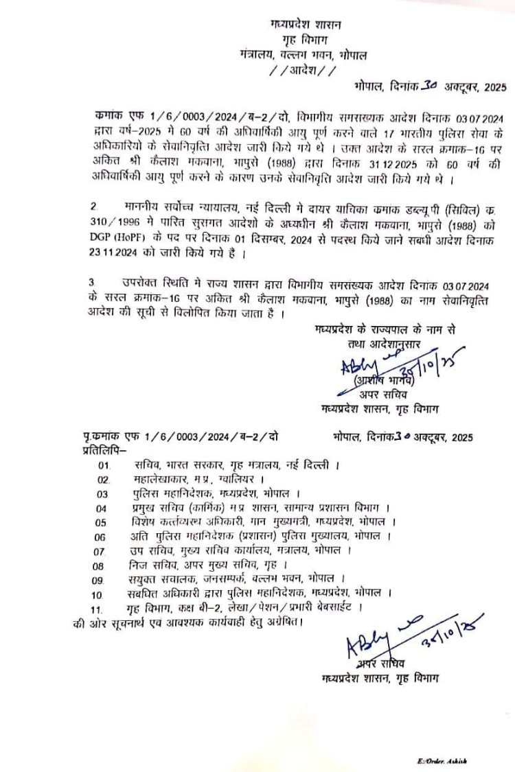 DGP कैलाश मकवाना की सेवानिवृत्ति निरस्त एक साल और बने रहेंगे पद पर
