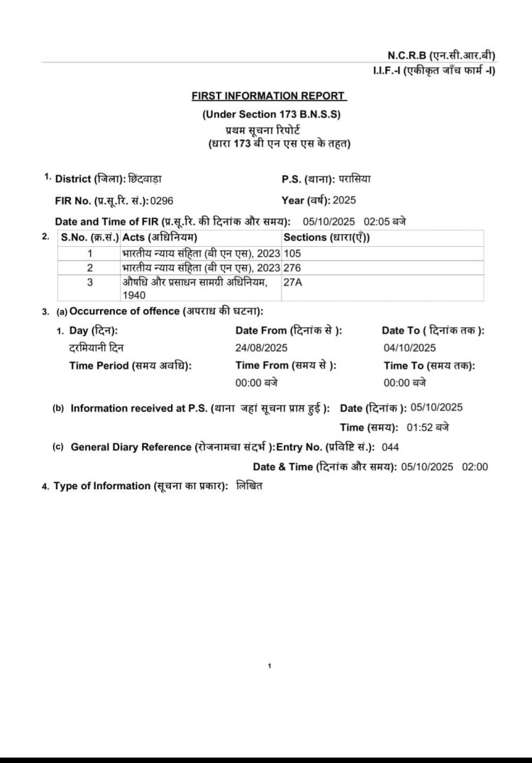 छिंदवाड़ा में बच्चों की मौत पर बड़ा एक्शन, कोल्ड्रिफ कफ सिरप लिखने वाला डॉक्टर गिरफ्तार, फार्मा कंपनी पर भी FIR