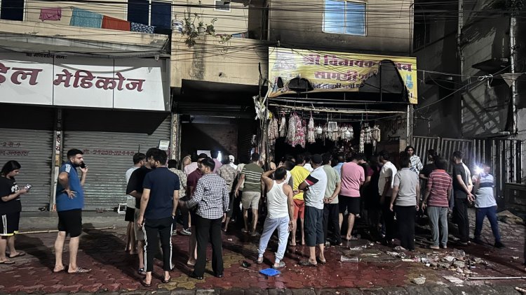 इंदौर के परदेशीपुरा में पूजा सामग्री की एक दुकान में भीषण आग लग लगने से लाखों रुपए का सामान जलकर खाक हो गया।