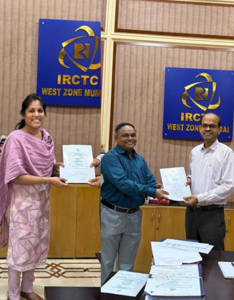 IRCTC पश्चिमी क्षेत्र मुंबई द्वारा अगस्त और सितंबर 2025 महीने के श्रेष्ठ कर्मचारी सम्मानित