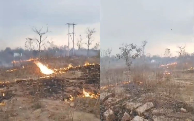 मऊगंज के मदरावल जंगल में लगी आग। फायर ब्रिगेड और पुलिस की कड़ी मेहनत से कई घंटे बाद आग पर काबू पाया गया और जंगल की कीमती लकड़ियों को सुरक्षित बचाया गया।
