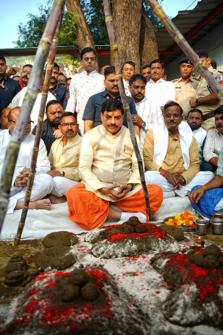 CM डॉ. मोहन यादव ने किया गोवर्धन पूजन, गाय के बछड़े को उठाया गोद, लगाया 56 भोग