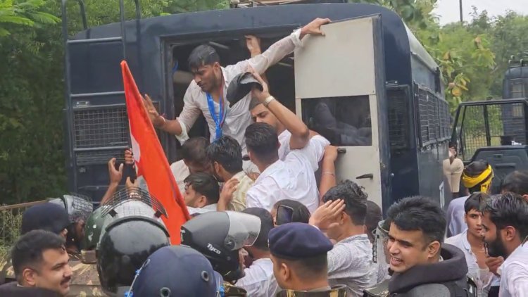 REWA में NSUI का प्रदर्शन, पुलिस ने अध्यक्ष को किया गिरफ्तार