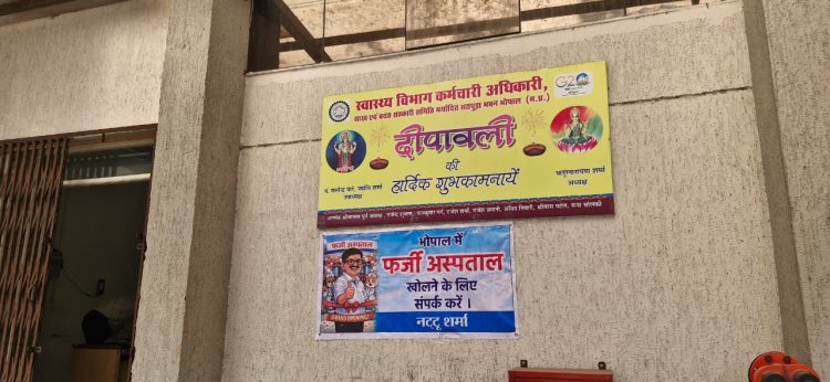 NSUI ने भोपाल में फर्जी अस्पतालों के खिलाफ पोस्टर लगाकर किया विरोध प्रदर्शन