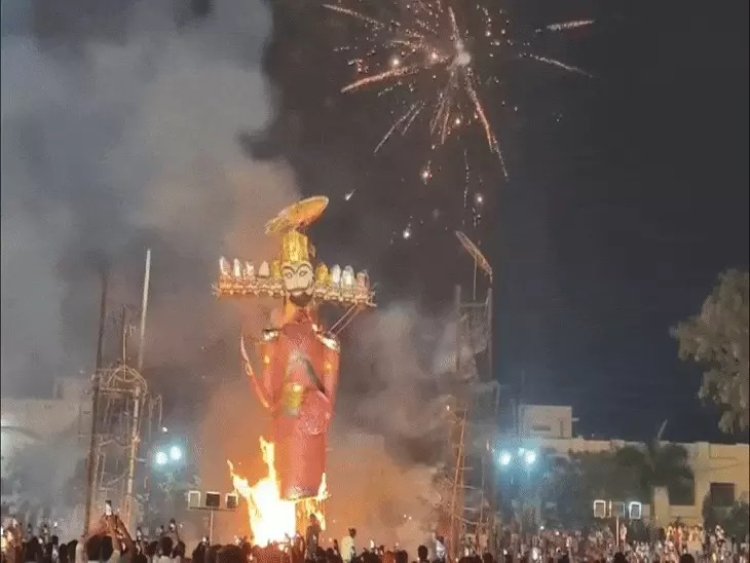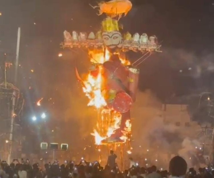 ठीक 12 बजे 51 फीट के रावण और 45- 45 फीट के कुंभकरण और मेघनाद के पुतलों का दहन किया गया। श्रीराम के रावण की नाभि में बाण मारते ही दशानन का अहंकार धू-धूकर जल गया। सबसे पहले मेघनाद, फिर कुंभकरण और सबसे अंत में रावण का दहन किया गया।