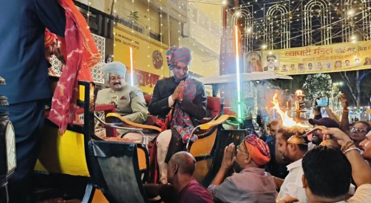सवारी शहर में फोर्ट रोड घोड़ा चौराहा साईं मंदिर से होते हुए कॉलेज चौराहा से एनसीसी मैदान पहुंचे जहां नगर विजय उत्सव समिति के अध्यक्ष प्रकाश तरानी संरक्षक सियाराम गुप्ता, संरक्षक भाजपा जिला अध्यक्ष वीरेंद्र गुप्ता के नेतृत्व में समिति के सदस्यों ने युवराज का स्वागत किया, जिसके बाद राम-लक्ष्मण हनुमान की पूजा-अर्चना की गई।