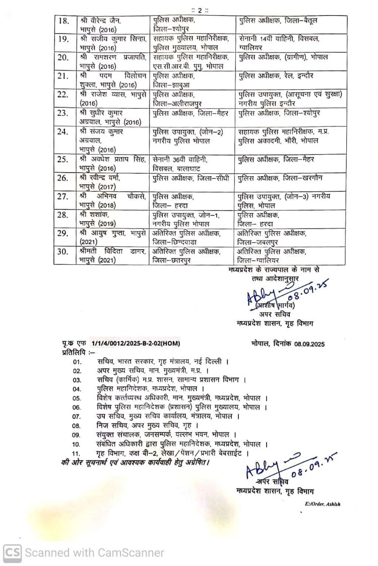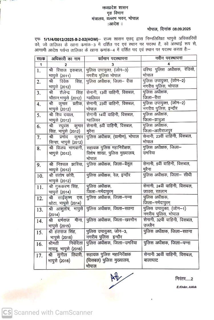 मुख्यमंत्री के मऊगंज दौरे के ठीक 24 घंटे के भीतर IPS स्तर पर फेरबदल किया गया, पुलिस मुख्यालय द्वारा जारी आदेश के अनुसार, DIG राजेश सिंह चंदेल का तबादला कर उन्हें भोपाल ग्रामीण रेंज की जिम्मेदारी सौंपी गई है। उनके स्थान पर 2010 बैच के IPS अधिकारी हेमंत चौहान को रीवा रेंज का नया DIG नियुक्त किया गया है।