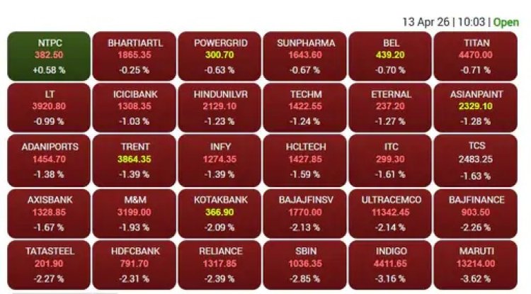सोमवार 13 अप्रैल को शेयर बाजार गिरावट के साथ लाल निशान पर खुला। कारोबारी स्तर में सेंसेक्स 1,613.09 अंक गिरकर 75,937.16 पर, जबकि निफ्टी लगभग 495 अंक की गिरावट के साथ 23,555.60 पर खुला।
