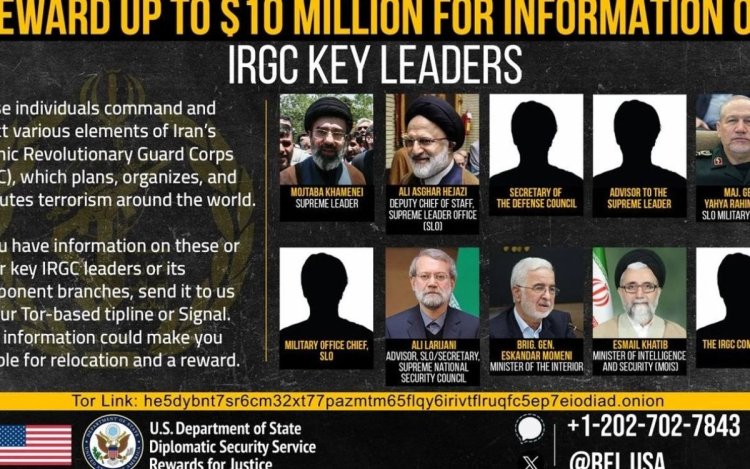 अमेरिकी विदेश विभाग ने 13 मार्च को सोशल मीडिया प्लेटफॉर्म X पर एक पोस्टर जारी किया, जिसमें इन 10 ईरानी अधिकारियों को “आतंकवादी गतिविधियों से जुड़ा” बताया गया है। पोस्टर में लोगों से अपील की गई है कि अगर उनके पास इन अधिकारियों के बारे में कोई विश्वसनीय जानकारी है तो वे इसे साझा कर सकते हैं।