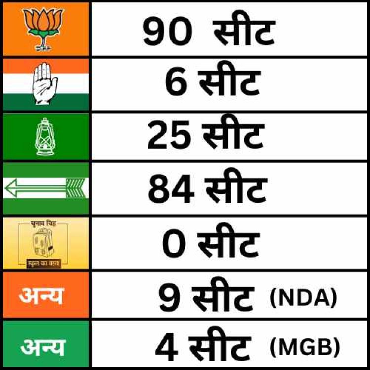 Updated:10:38 अभी NDA 170 सीटों पर है जबकि MGB 67 सेटों के साथ आगे बढ़ रही है. जनसुराज को फिलहाल कोई भी सीट्स हासिल नहीं हुई है. वहीं इस बार के चुनाव में RJD सबसे बड़ी पार्टी बन कर उभर रहीं है. RJD को अब तक 77 सीट्स मिल चुकी है. जिससे लग रहा है की नितीश की योजनाओं का असर तो हुआ है और तेजस्वी यादव के वादों का असर लोगों पर नहीं पड़ पाया है. 243 सीटों वाले बिहार विधानसभा चुनाव में बहुमत पाने के लिए पार्टियों को 122 सीटों की जरुरत है.