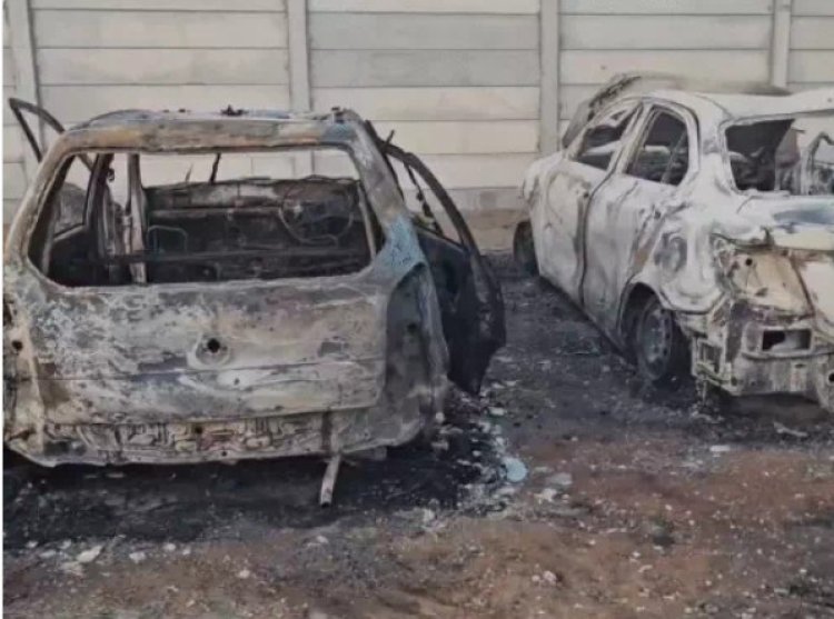 प्रदर्शनकारी किसानों ने फैक्ट्री में खड़ी गाड़ियों को फूंक दिया।