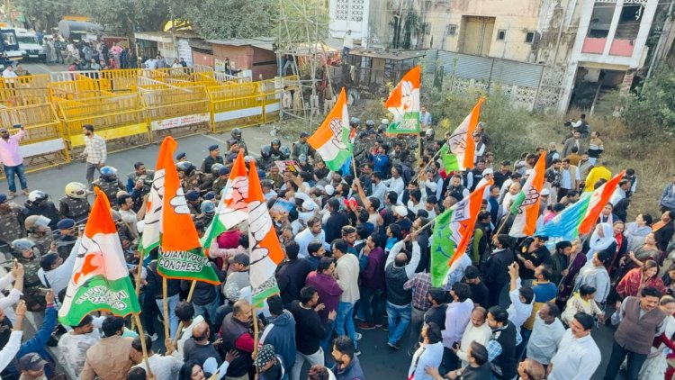 नेशनल हेराल्ड मामले में बीजेपी कार्यालय का घेराव करने निकले कांग्रेस कार्यकर्ताओं को पुलिस ने बैरिकेडिंग कर बीच रास्ते में रोक दिया।