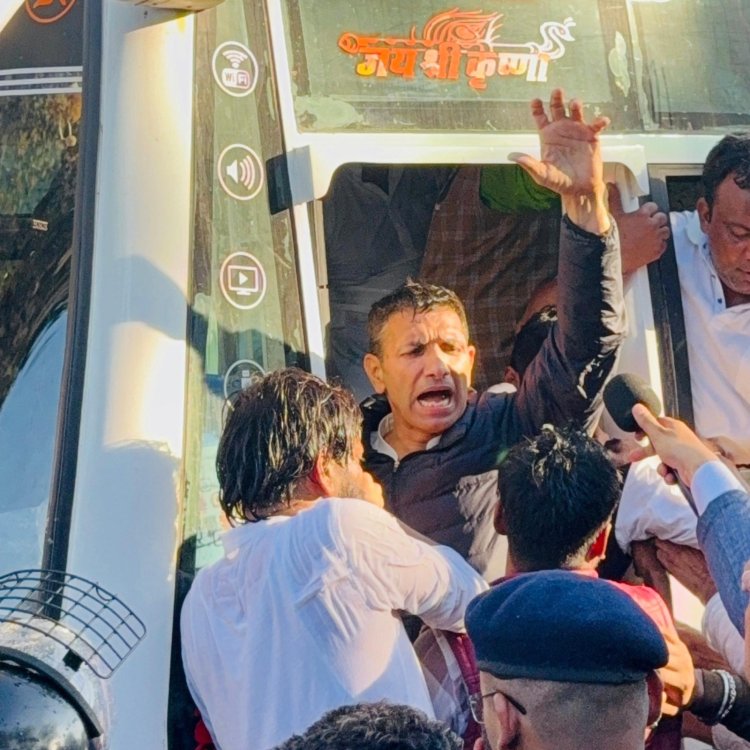 इस दौरान पीसीसी चीफ पटवारी के इशारे में कांग्रेसियों ने पुलिस की बस का घेराव कर दिया।