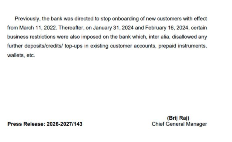 RBI ने अपने बयान में कहा कि Paytm Payments Bank का संचालन ऐसे तरीके से किया जा रहा था, जो न केवल बैंकिंग नियमों के विपरीत था, बल्कि जमाकर्ताओं के हितों के लिए भी हानिकारक हो सकता था। केंद्रीय बैंक के अनुसार बैंक कई नियामकीय (regulatory) मानकों का पालन करने में असफल रहा, जिसके चलते यह सख्त कदम उठाना पड़ा। RBI ने यह भी स्पष्ट किया कि बैंकिंग विनियमन अधिनियम, 1949 के तहत निर्धारित कई प्रावधानों का उल्लंघन पाया गया है।