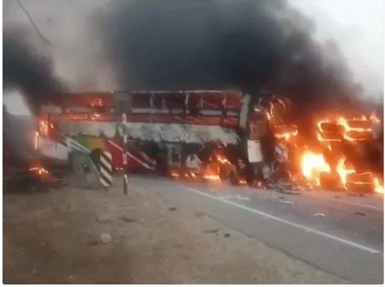 आंध्र प्रदेश बस-डंपर में हुई टक्कर, हादसे में 14 जिंदा जले, 23 घायल