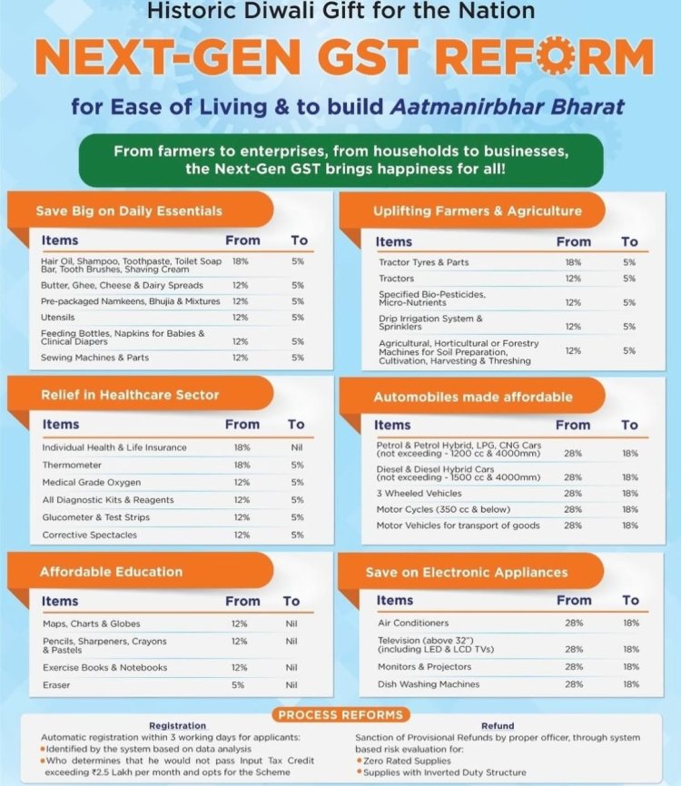 केंद्र सरकार ने बुधवार 3 सितम्बर को GST को लेकर बड़ा बदलाव किया हैं. केंद्र सरकार का कहना है की इस नए बदलाव से कई चीजे सस्ती हो जाएंगी। चलिए जानते है की ये नए बदलाव हैं क्या और इससे मिडिल क्लास को क्या फायदा होगा?