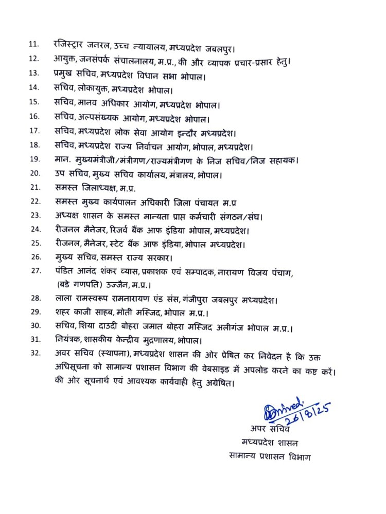 गणेश चतुर्थी पर पूरे मध्यप्रदेश में रहेगी छुट्टी