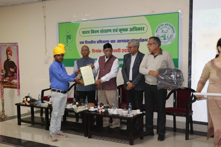 कार्यक्रम का मुख्य उद्देश्य किसानों और प्रजनकों को पादप किस्म संरक्षण एवं कृषक अधिकार अधिनियम (PPV&FR Act) के प्रावधानों, महत्व सहित उनके अधिकारों के प्रति जागरूक करना था। इस अवसर पर देशी धान की विभिन्न पारंपरिक किस्मों का संरक्षण एवं संवर्धन करने वाले किसानों को कुलपति डॉ. मिश्रा ने रोली का टीका लगाकर और पगड़ी पहनाकर सम्मानित किया। साथ ही उन्हें पादप किस्म संरक्षण व कृषक अधिकार प्रमाण पत्र प्रदान किए गए। यह सम्मान न केवल किसानों के परंपरागत ज्ञान की मान्यता है, बल्कि उनके बौद्धिक अधिकारों की औपचारिक स्वीकृति भी है।