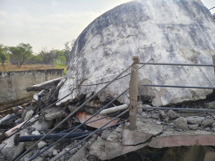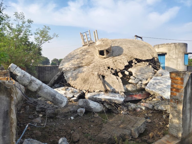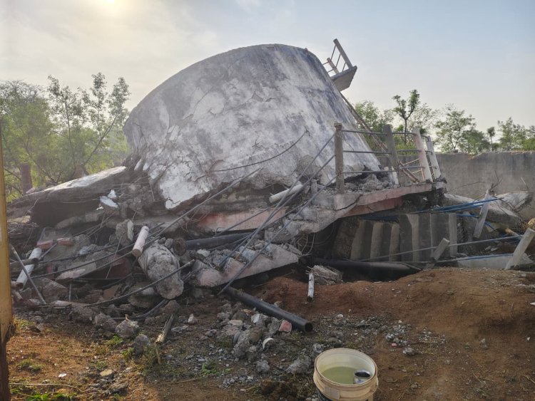 गुणवत्ता खराब होने के कारण धराशाई हुई पानी की टंकी