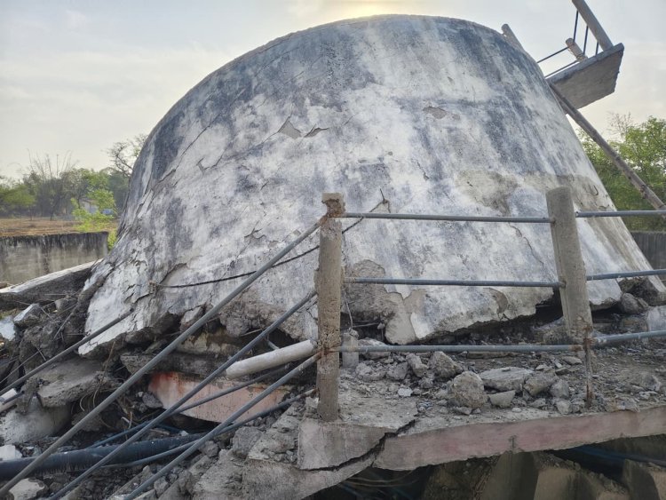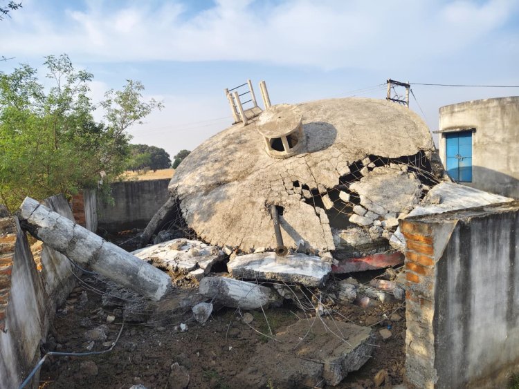 टेस्टिंग में धराशाई हुई पानी की टंकी। प्रभारी सहायक यंत्री पर गिरी गाज। प्रमुख अभियंता ने किया निलंबित। मेजर्स शिवेंद्र तिवारी संविदाकार ने 121.42 लाख की लागत से कराया था निर्माण कार्य।