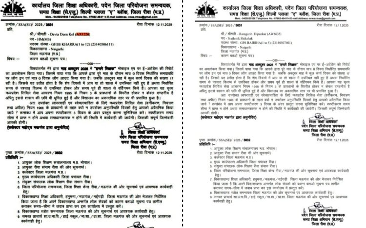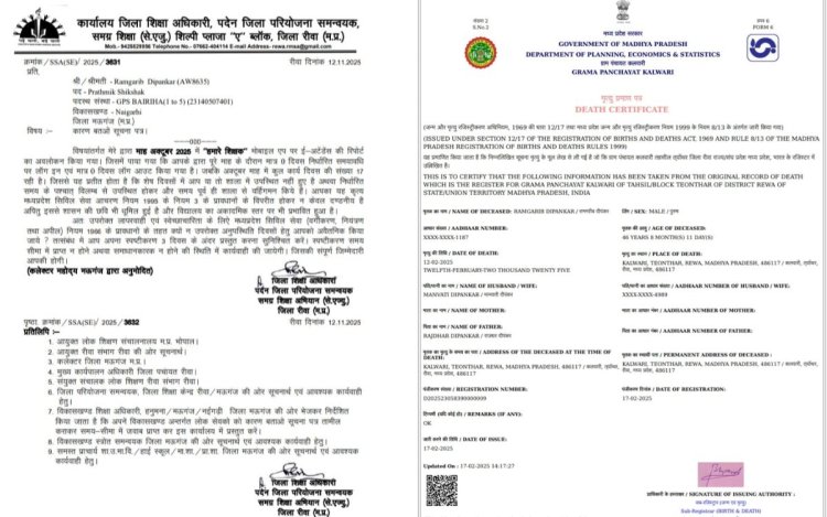 शिक्षा विभाग ने ई-अटेंडेंस न लगाने पर मऊगंज के 1568 शिक्षकों को नोटिस भेजा, जिनमें दो ऐसे शिक्षक भी शामिल हैं जिनकी मौत काफी पहले हो चुका है। इस गलती से विभाग की रिकॉर्ड-व्यवस्था और ऐप की विश्वसनीयता पर सवाल उठ गए हैं।