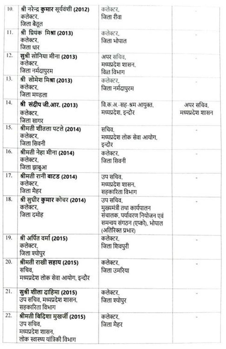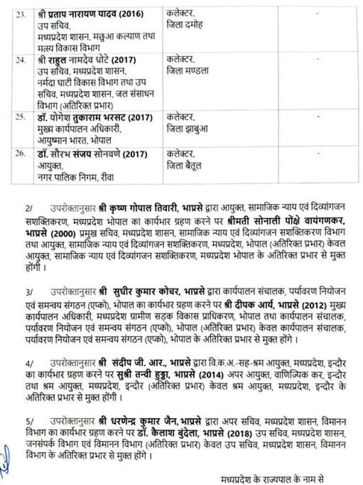 इसके अलावा, रीवा नगर निगम के कमिश्नर डॉ. सौरभ संजय सोनवणे को बैतूल जिले का नया कलेक्टर नियुक्त किया गया है।