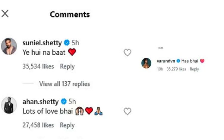 राशिद खान की इस पोस्ट पर फिल्म की स्टार कास्ट ने भी रिएक्शन दिया। अहान शेट्टी ने कमेंट किया, “बहुत सारा प्यार भाई”, वहीं वरुण धवन ने लिखा, “हां भाई।” दिग्गज एक्टर सुनील शेट्टी ने भी रिएक्शन देते हुए कहा, “ये हुई ना बात।”