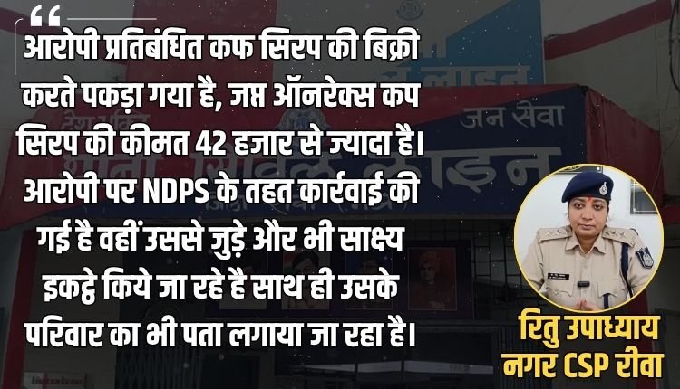 रीवा के कबाड़ी मोहल्ले से 225 शीशी ऑनरेक्स कप सिरप के साथ आरोपी गिरफ्तार