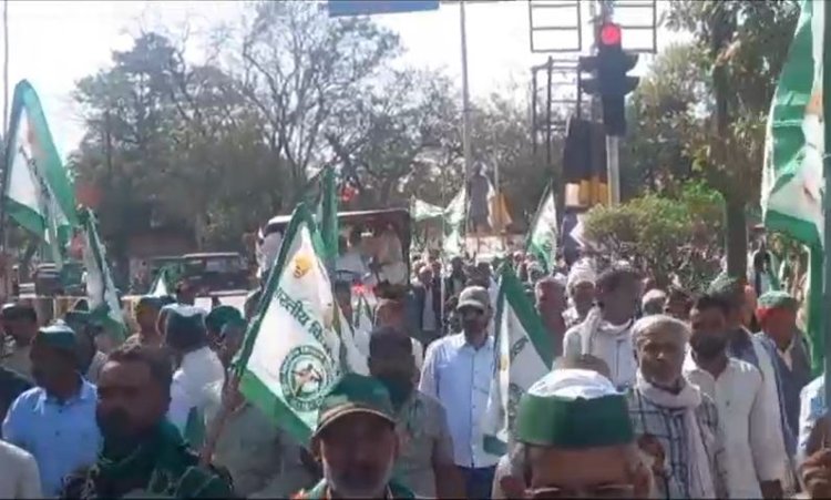 निजी सीमेंट कंपनी के विरोध में किसानों ने किया प्रदर्शन, निकाली ट्रैक्टर रैली