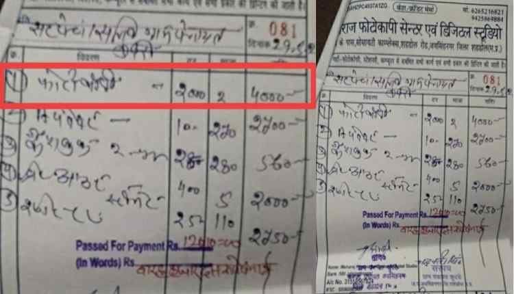 शहडोल में 2 पेज की फोटोकॉपी के लिए 4000 रुपये का बिल पास