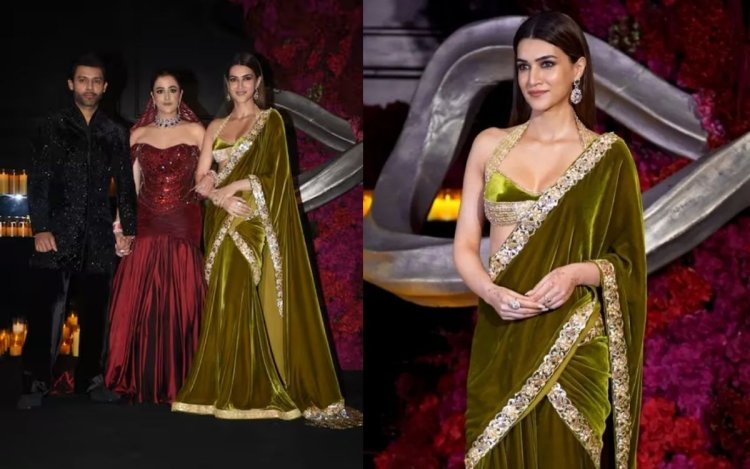 फंक्शन में नूपुर सेनन ने रेड कलर का सेक्विन गाउन पहना था, जबकि स्टेबिन बेन ब्लैक सूट में नजर आए। कृति सेनन ऑलिव ग्रीन वेलवेट साड़ी में नजर आईं। उनका लुक फैंस द्वारा काफी पसंद किया जा रहा है।